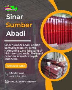 Sinar Sumber Abadi juga menyediakan layanan purna jual, termasuk perawatan dan perbaikan jika diperlukan. Hal ini menjamin pintu harmonika tetap berfungsi dengan baik dalam jangka panjang.