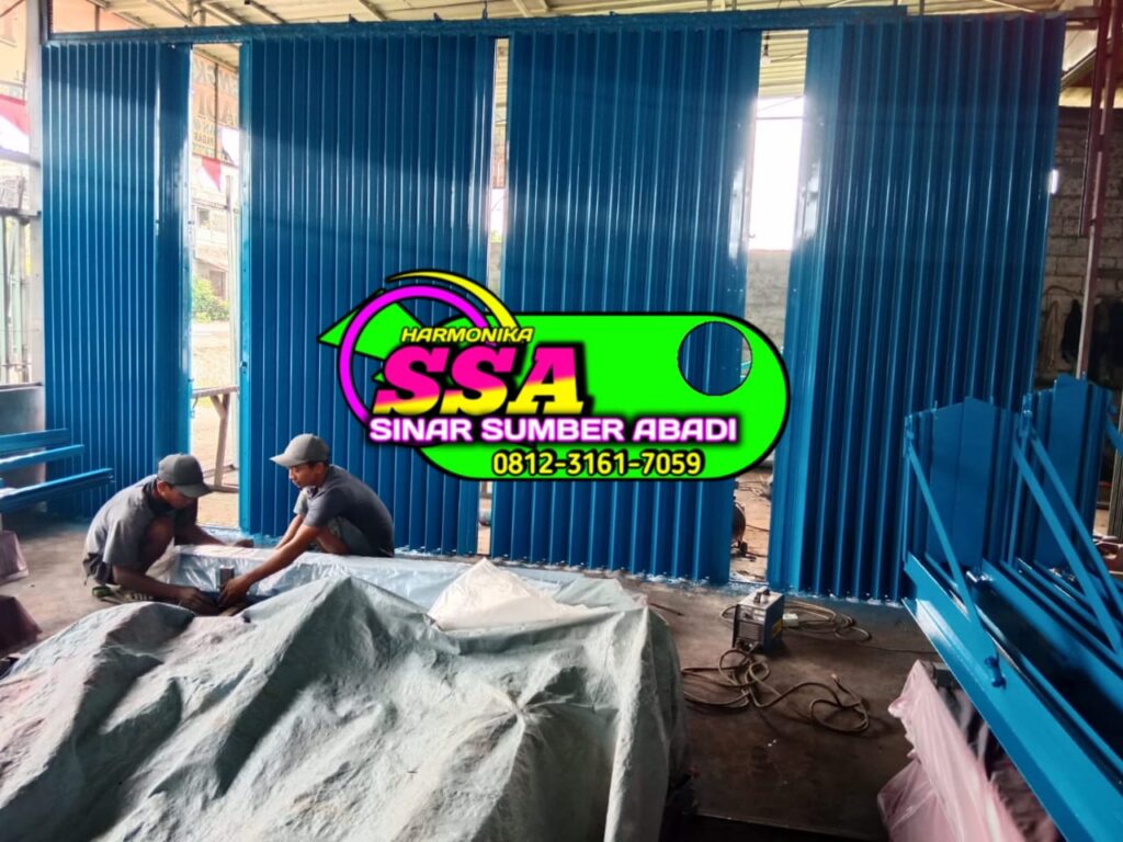 Kami menggunakan bahan berkualitas tinggi seperti besi galvanis anti karat yang memastikan pintu harmonika tahan lama meskipun terkena hujan dan panas setiap hari.