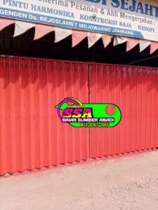 Pintu harmonika dari besi menawarkan keamanan lebih tinggi. Biasanya digunakan di tempat-tempat yang membutuhkan perlindungan ekstra, seperti gudang atau ruko. - Kayu