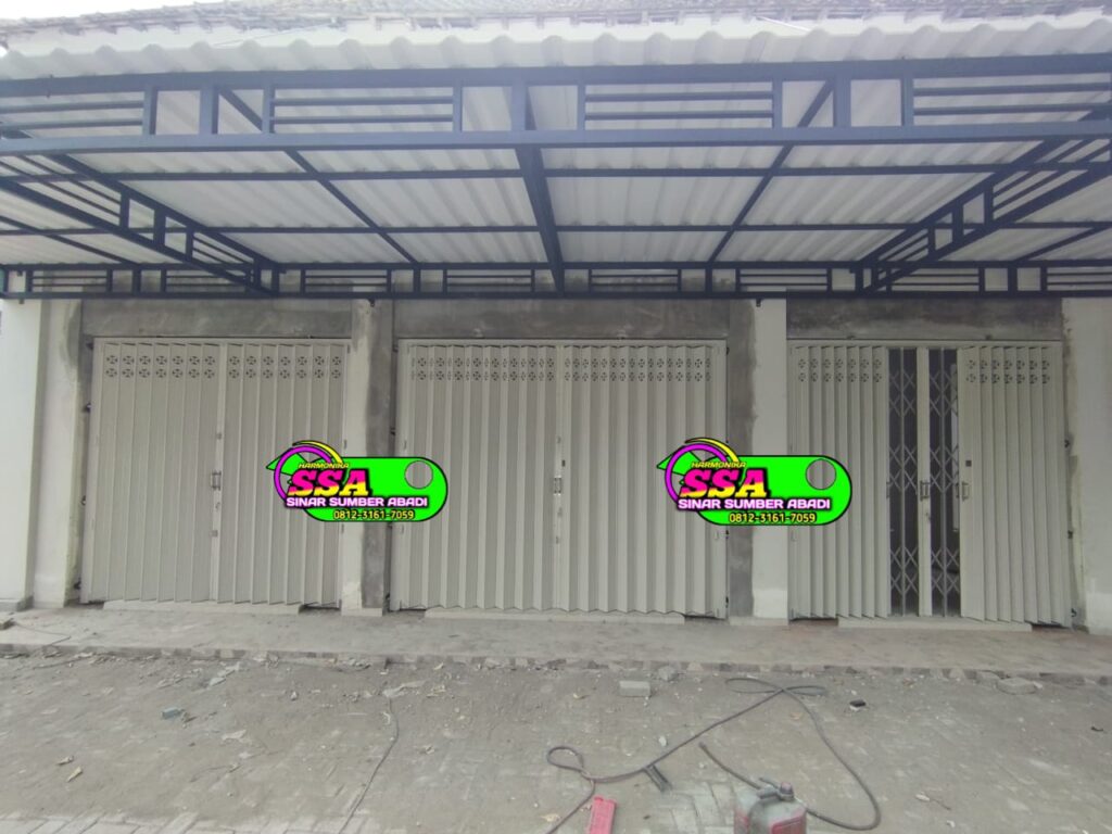 Dibuat dari bahan galvanis atau besi berkualitas tinggi, pintu harmonika mampu bertahan di tengah cuaca lembap dan panas khas Sulawesi Selatan.